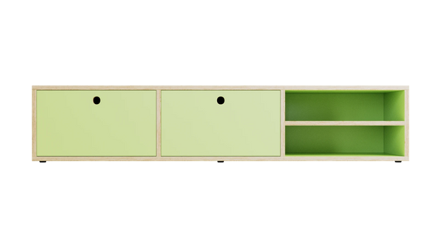 Fresh and composed, the matcha green lowboard delivers a grounded calm with a touch of unexpected charm. Its clean form is offset by a vibrant softness, lending balance to rooms that crave lightness without losing clarity. With shelves for display and drawers for discretion, it invites you to live both openly and neatly. Whether placed in a hallway, dining area or living room, this piece is a tonal punctuation mark - gentle but distinctive. It blends seamlessly into neutral palettes or stands boldly against darker tones, adapting to your style with quiet confidence.