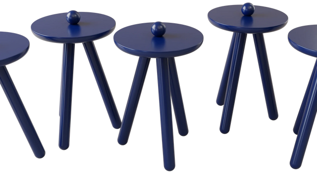 Made from solid wood and finished in a matte dark blue, Pops offers weight and warmth in equal measure. The rich tone enhances its sculptural silhouette, while the smooth texture invites interaction from all angles.