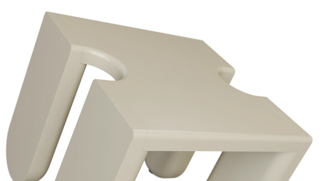 TIP TAP is the result of a form-driven exploration of structure and visual rhythm. Its clean geometry, softened contours, and precise detailing offer a subtle nod to puzzle-piece aesthetics, inviting interaction and engagement with the object.