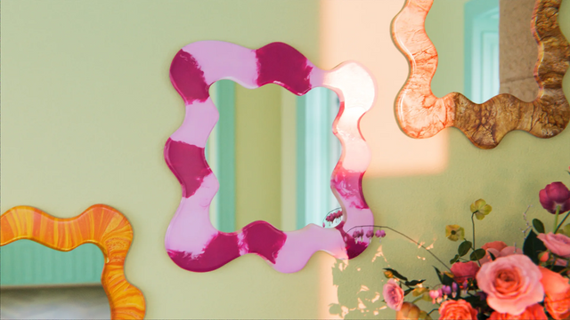 The wavy, playful frame is a testament to the skilled craftsmanship involved in its creation. The unique design elements reflect Rikke’s commitment to celebrating individuality and free expression. This mirror is more than a functional piece; it is a work of art that transforms any space into a lively, reflective haven.