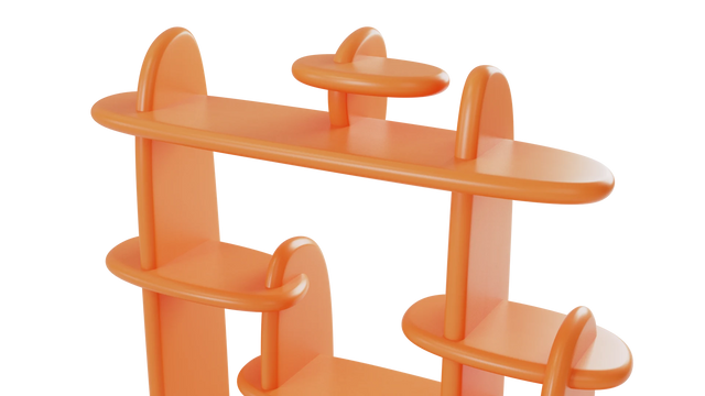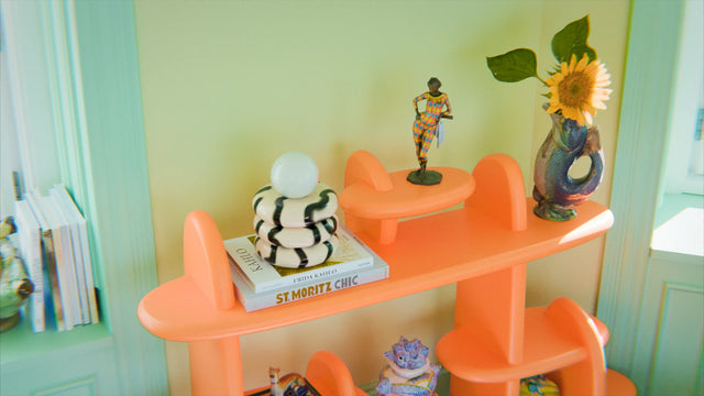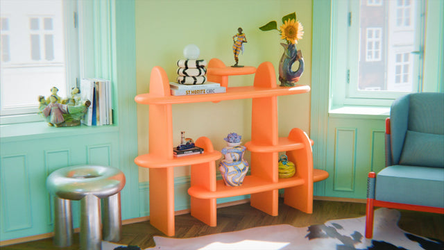 Baloo’s layered form invites interaction, guiding the eye in soft loops across its curved surfaces. Each shelf appears to float, supported by vertical arches that create a rhythm of light and structure, a testament to refined spatial play.