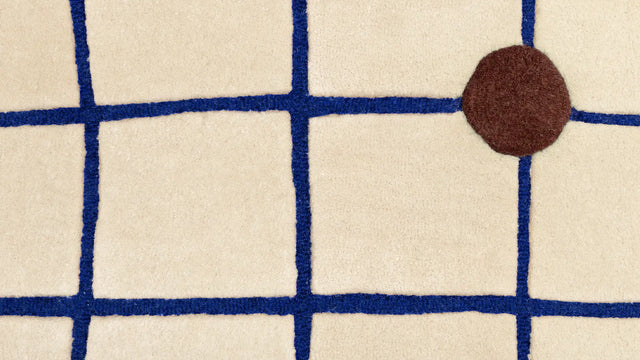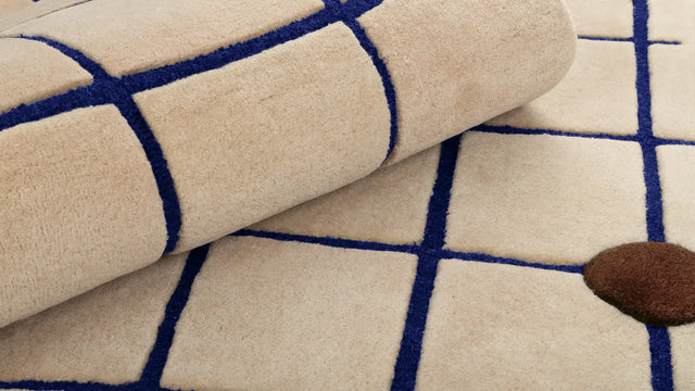 Chaque tapis est tufté à la main par des artisans qualifiés, permettant à la qualité dessinée de la grille d'être traduite en une surface précise mais douce. Cette technique préserve les subtiles irrégularités des lignes, conférant à la composition son caractère distinctif.