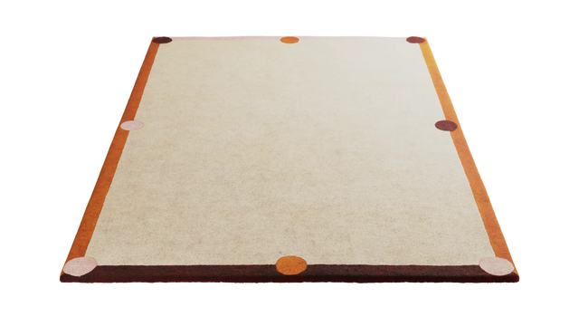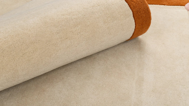 Ogni tappeto è realizzato a mano da artigiani esperti, permettendo al design di essere tradotto in una superficie raffinata e tattile. Questo processo garantisce chiarezza nella composizione geometrica, preservando l'equilibrio tra il bordo definito e il morbido campo centrale.