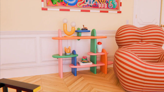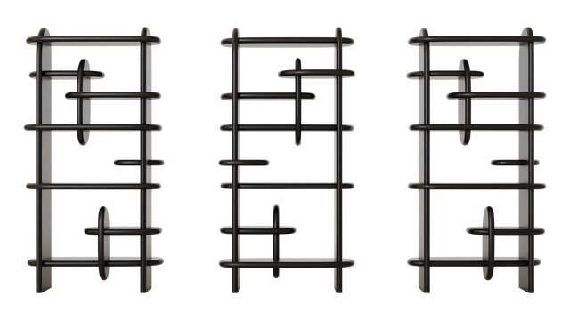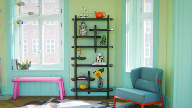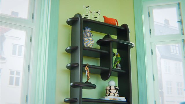 With its towering presence and sculptural form, the large Baloo Bookcase in black offers a commanding yet refined addition to any space. Its curving silhouette weaves together motion and structure, creating an artistic shelving system with presence and poise. Geometric yet organic, this piece balances playfulness with precision. Painted in a deep black semi-matte lacquer, Baloo becomes both a bold focal point and a versatile backdrop - ready to host books, art, and curiosities in style.