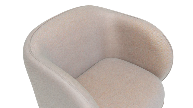 Det beige uldstof tilfører en jordnær varme til Lover Lounge, og tilbyder en blød, holdbar tekstur, der fremhæver stolens fyldige form. Dens tone bringer lethed, lys og alsidighed til forskellige interiører.