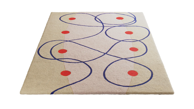 Hvert tæppe er håndtuftet af dygtige håndværkere, hvilket gør det muligt for det udtryksfulde gitter at bevare sine subtile uregelmæssigheder. Denne proces tilfører designet en taktil dybde, hvor de tegnede linjer oversættes til en blød, men alligevel defineret overflade.