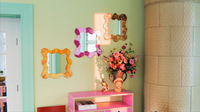Den bølgende, legende ramme er et vidnesbyrd om det dygtige håndværk, der er involveret i dens skabelse. De unikke designelementer afspejler Rikkes engagement i at fejre individualitet og fri udtryk. Dette spejl er mere end et funktionelt stykke; det er et kunstværk, der forvandler ethvert rum til et livligt, reflekterende fristed.