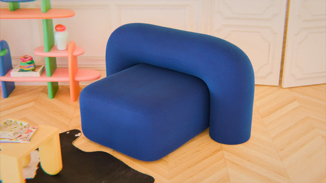 Betrukket med et rigt dybblåt uldstof, tilbyder MOSS en indbydende fornemmelse og raffineret elegance. Materialets tekstur fremhæver stolens organiske former, samtidig med at det sikrer varme og komfort i daglig brug.