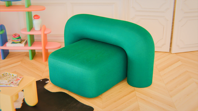 MOSS er polstret i et frodigt uldstof i en levende grøn farve, der tilfører stolen en dristig energi og luksuriøs blødhed. Dette tekstil løfter dens organiske form, samtidig med at det tilbyder varme og en indbydende tekstur.