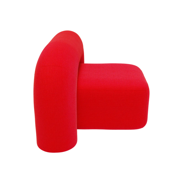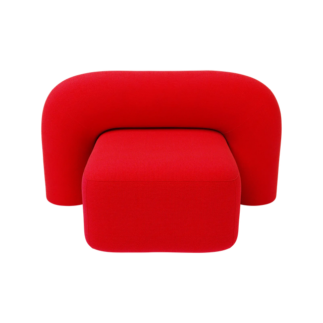 Moss er polstret med førsteklasses uldstof, der tilbyder en rig tekstur, holdbarhed og en beroligende omfavnelse. Den dristige røde nuance giver energi til interiøret og gør stolen til et dynamisk midtpunkt.