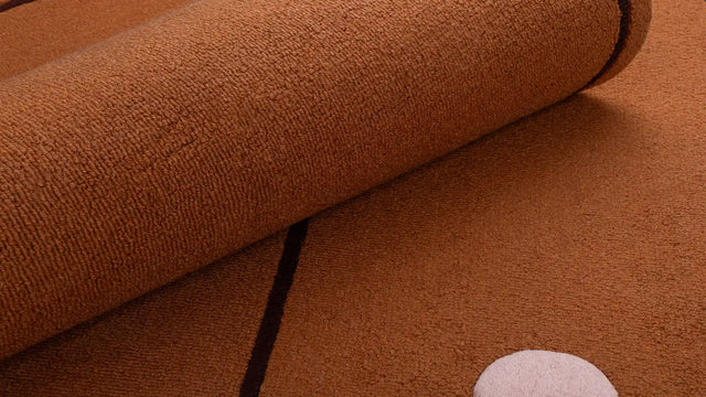 Fremstillet af uld, tilbyder tæppet en naturligt blød og slidstærk overflade, der øger komforten under fødderne. Uldfibre er værdsat for deres holdbarhed og evne til at bevare farvernes intensitet, hvilket gør, at de dristige toner i designet forbliver levende over tid.
