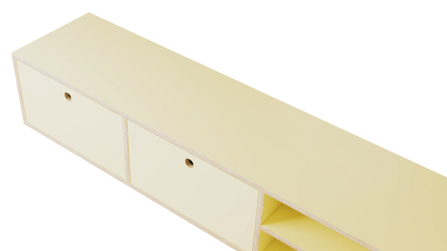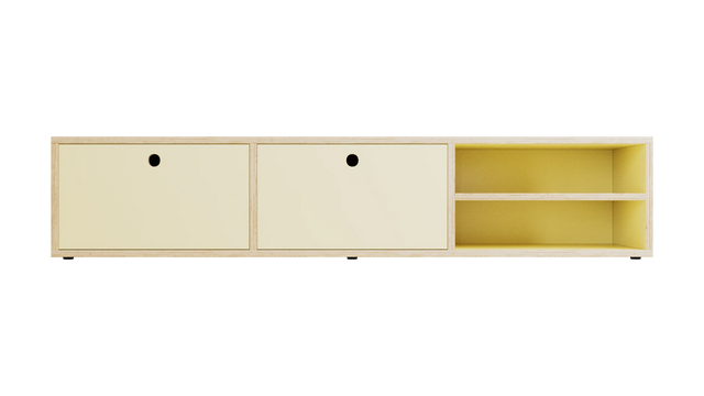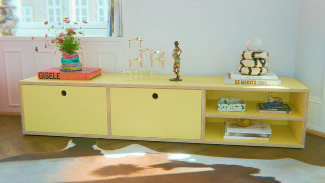 This butter yellow lowboard is a quiet revolution in storage - gentle in tone yet precise in form. Its soft palette brings warmth and light to any interior, while the minimal silhouette adds structural elegance. With its mix of concealed drawers and open shelving, it invites order without rigidity. Perfect for anchoring a room or completing a corner, it adapts to your space with grace. The balance between functionality and presence makes this piece a refined companion—never loud, always essential.