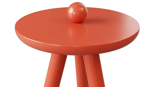 Pops is a sculptural side table that pairs visual delight with practical poise. Built from solid wood, it features three rounded legs and a circular top connected by a central sphere. This bold yet subtle element provides structural stability while becoming the table’s most iconic detail. Finished in a soft salmon hue, Pops feels vibrant without being loud. Its curving form and smooth edges add lightness to the space it inhabits. Whether placed beside a lounge chair or used as a decorative accent, Pops brings warmth, clarity and a sense of joyful precision to any interior.