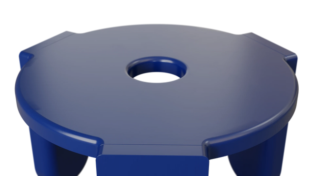 Constructed from solid wood and painted in a bold dark blue, Tip Tap balances depth and clarity. The surface is smooth and grounded, bringing out the subtle curves and sharp intersections of its unique geometry.