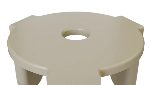 Tip Tap was born from the desire to break away from traditional rectangles and create a visual shift. The top is circular but punctuated by a hollow core, while the three legs are asymmetrically arranged for both strength and expression. The silhouette is unexpected but perfectly measured.